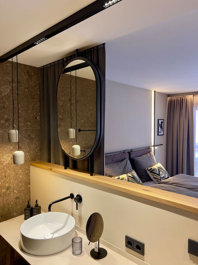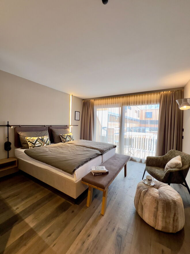 The Alpinist est au cœur de l'action. Pour les personnes qui veulent ressentir l'extérieur, mais qui apprécient consciemment l'intérieur. Notre nouvelle construction se regroupe autour d'un jardin idyllique - un lieu de retraite au milieu d'un décor alpin. Des couleurs chaudes, des matériaux nobles et des tissus naturels créent un sentiment d'habitat qui allie esprit contemporain moderne et sécurité alpine. Ici, la réduction rencontre le confort. La nature et le design. Et l'extérieur avec la maison.